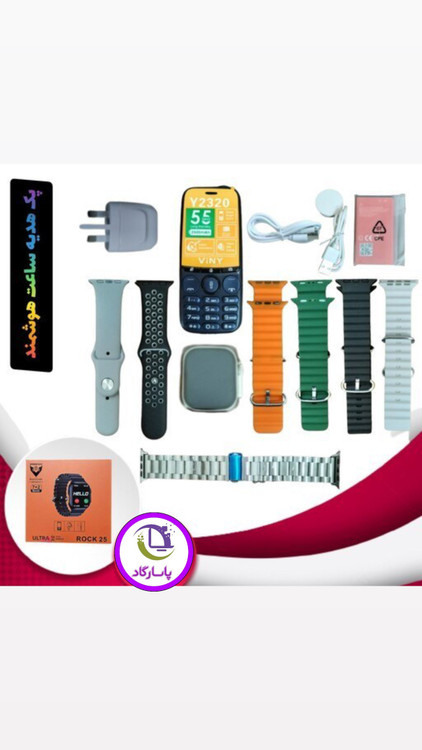 پک ساعت سری ۸ الترا و گوشی دکمه ای ۳ سیم کارته ریجسترم میشه 😍رمم میخوره♥️دوربین دار ♥️