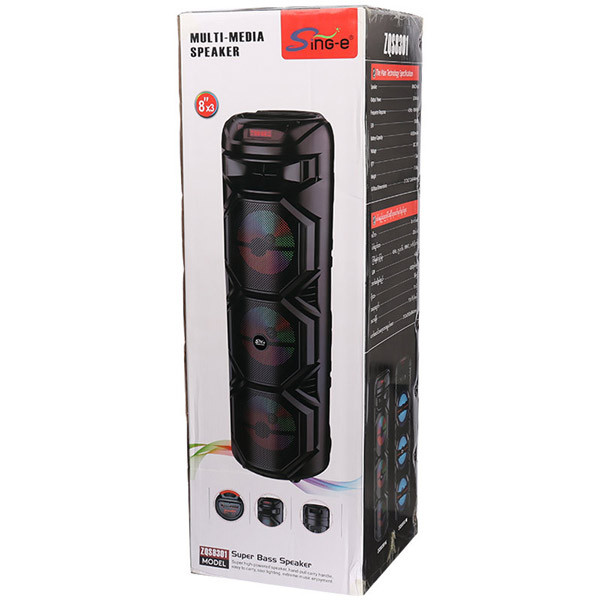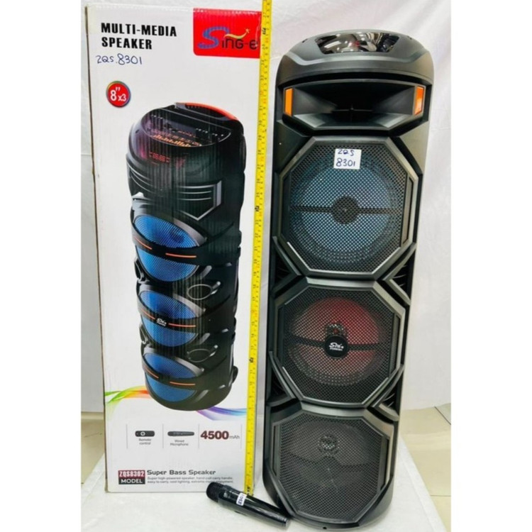 اسپیکر 24 اینچ مدل ZQS.8301 و ZQS.8302 ارتفاع 92cm میکروفن شارژی بی سیم باتری 4500 توان خروجی 60وات اسپیکر جدید سه ساب(سه باند) ZQS 8301 محصول جدید از شرکت ZQS میباشد که در ایران علاقمندان زیادی دارد این اسپیکر زیبا و باکیفیت دارای سه باند 8 اینچ میباشد که همین امر باعث شده پرتاب صدای خوبی نسبت به اسپیکرهای 2 باند داشته باشه طراحی شیک و زیبا با چرخهای روان باعث شده که شما بتونید به راحتی آن را حمل کنید یکی از مهمترین ویژگیهای این محصول جدید که داری میکروفن وایرلس( بیسیم) قابل شارژ با پورت TPC مییباشد که جدیدا اسپیکرهای شرکت zqs این قابلیت را دارا میباشد.ریموت کنترل،کابل شارژ TPC,باطری 4500 میلی آمپر،توان خروجی 60 وات،اتصال کارت حافظه،فلش.AUX, بلوتوث. این ویژگیها باعث شده که این محصول صدای باکیفیت،قیمت مناسب،جمع و جور،بیس نرم، برای شرکت در مجالس شادی و دورهمی خانوادگی شما عزیزان باشد.