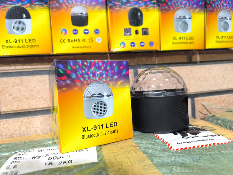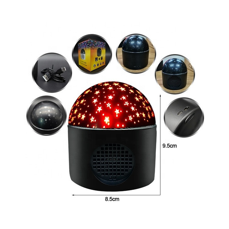 چراغ خواب و اسپیکر طرح ماه و ستاره مدل XL-911 با جنس بدنه از پلاستیک فشرده و تلق شیشه ایی مشکی طرح ستاره و یک ماه در قسمت بالای آن میباشد این چراغ خواب دارای موتور گردان داخلی جهت انعکاس تصاویر ماه و ستاره بر روی سقف و دیوار اتاق خواب بوده که زیبایی فوق العاده ایی به اتاق خواب شما میدهد بلوتوث این دستگاه سازگار با تمامی گوشی های موبایل و تبلت و غیره میباشد که برد آن استاندارد و 10 متر است و میتوانید هنگام خواب نیز از طریق اسپیکر این چراغ خواب موسیقی دلخواه خود را گوش دهید.منبع تغذیه این رقص نور میتواند شارژر موبایل و یا تبلت و یا پاوربانک شما باشد که در داخل جعبه دارای یک کابل میکرو یو اس بی به طول 120 سانتی متر است و مصرف انرژی چراغ خواب XL-911 فوق العاده کم به دلیل ال ای دی های نسل جدید میباشد و در قسمت پشت این دستگاه یک سوکت میکرو یو اس بی جهت اتصال کابل و یک کلید خاموش و روشن وجود دارد