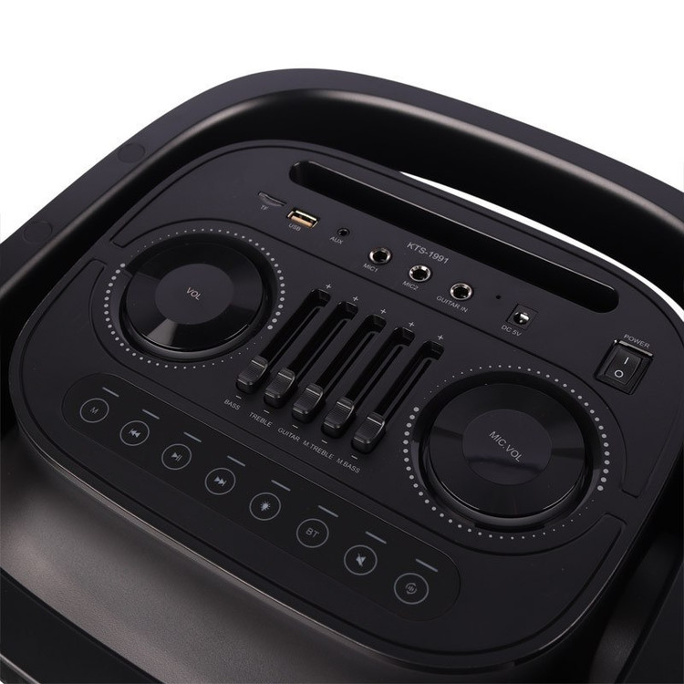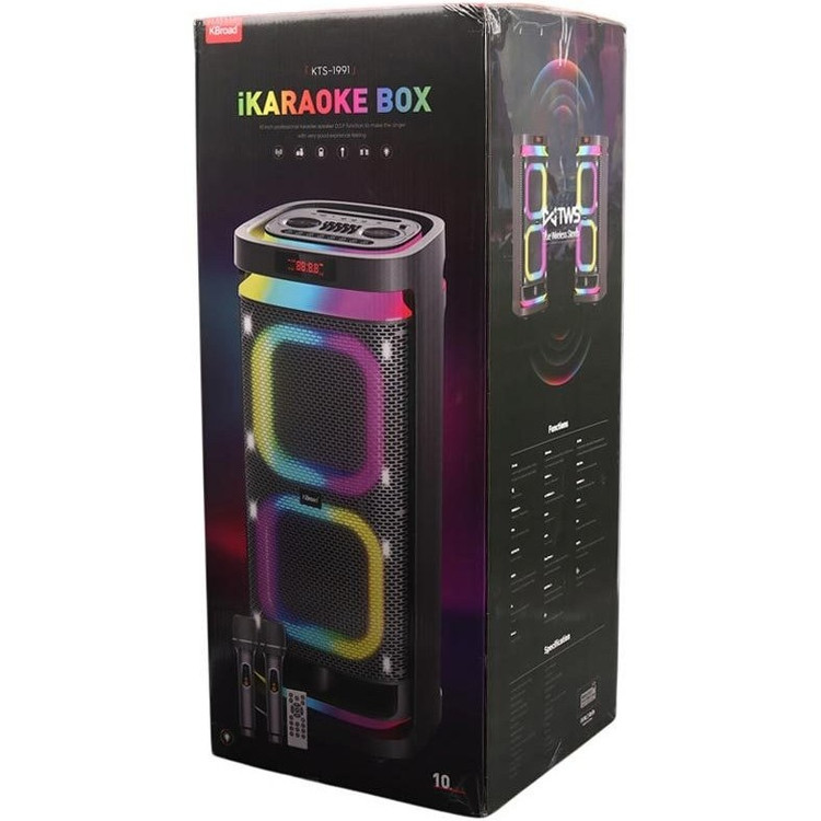 با اسپیکر و پارتی باکس قدرتمند و قابل حمل kts 1991می توانید مهمانی را با صدای قدرتمند و نمایش نور پویا و تمام عیار شروع کنید. این دستگاه ، با صدای قدرتمند و باس عمیق همراه با ولوم اکو و دیلی ، برای هر مهمانی، محتوای جدیدی به ارمغان می آورد. همچنین مجموعه ای از فن آوری های پیشرفته مانند بلوتوث را در خود دارد. استفاده از دو میکروفون اسپیکر جهت آواز. پشتیبانی USB، AUX، رادیو ، HD Sounds ، تکنولوژی میک پری و… از جذابیت های دیگر این اسپیکر می باشد.