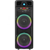قدرت صدا 5500 وات سایز ساب 10*2 اینچ سایز توییتر 2*1 اینچ کنترل دارد شارژدهی 5 ساعت ورودی ها فلش/ مموری / گیتار/ aux/ میکروفن ارتفاع 90 سانت میکروفن دارد ورودی تایپ سی دارد رادیو دارد درگاه مموری کارت دارد باتری 5000 میلی آمپر Tws دارد رقص نور رینگ لایتی بلوتوث دارد اکلایزر مولتی باند دارد میکروفون بیسیم شارژی قابلیت ضبط صدا دارد تغییر رقص نور دارد