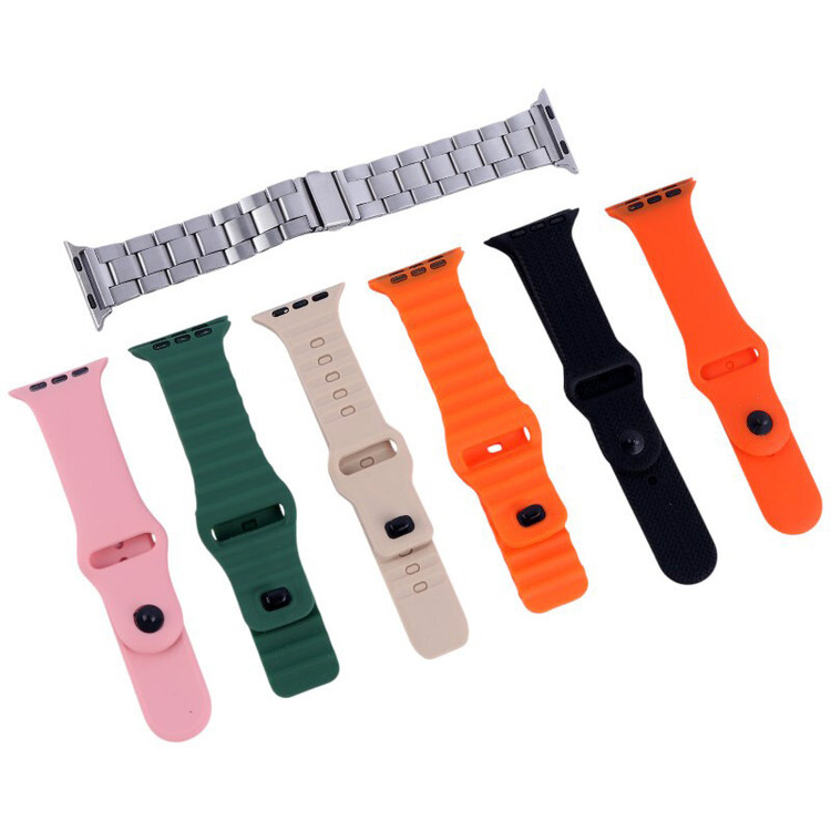 بدنه از جنس فلز و پلاستیک، اقلام همراه شامل یک عدد بند فلزی، 6 عدد بند سیلیکونی و کابل شارژ مغناطیسی