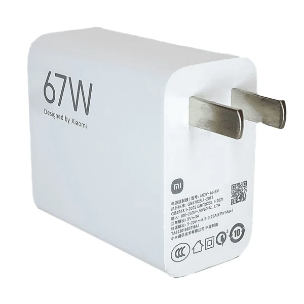 آداپتور شارژر اصلی 67 وات شیائومی مدل MDY-14-EV از UL95-V0 مواد ضد حریق و مقاوم در برابر درجه حرارت بالا، قابل اعتماد و ایمن ولتاژ ورودی به شارژر شیائومی برابر با 100-240V است و نکته جالب شارژر این است که به صورت خودکار ولتاژ گوشی شما را اندازه می گیرد و بر اساس آن گوشی شما را با نهایت سرعت شارژ می کند.