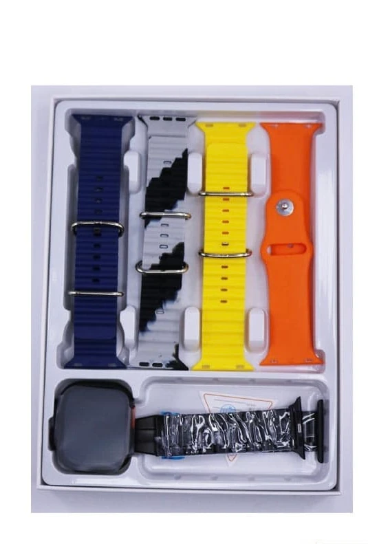 سری 9 اولترا دارای پنج بند ( یکی فلزی و چهار عدد سلیکونی) دارای حسگرهای ضربان قلب، اکسیژن خون، قدم شمار و .. دارای اسپیکر و میکروفون برا مکالمه و پخش موزیک دارای رنگ بندی، ارسال رندوم بر اساس موجودی دارای ضمانت سلامت