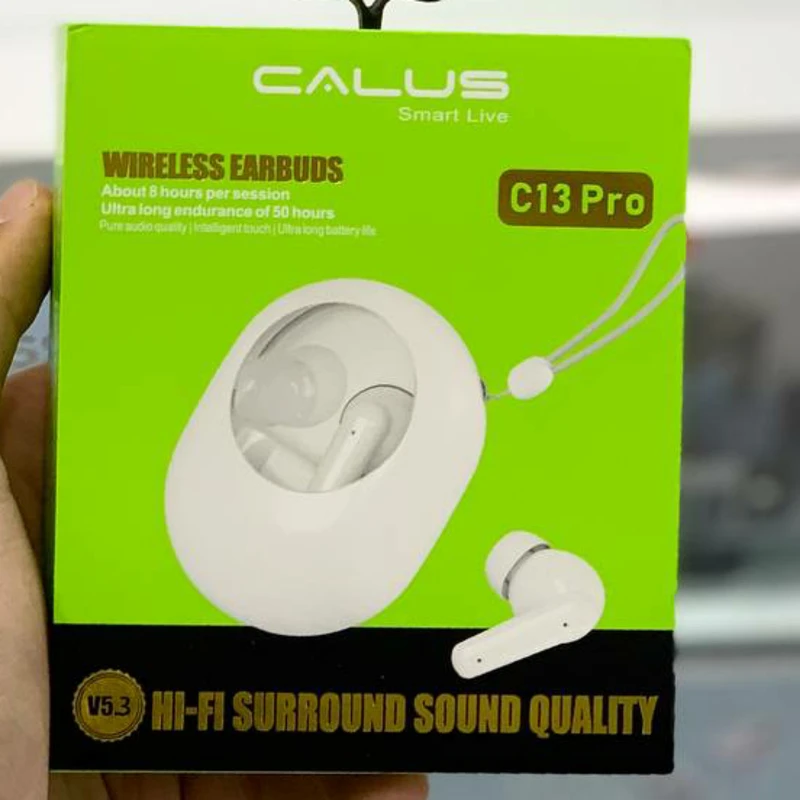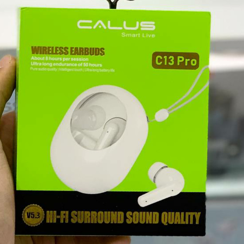 کیس شارژر هندزفری بلوتوثی کالوس مدل C13 PRO با یک ظاهر بیضی شکل، یک درب باز شونده دارد که دایره شیشهای برروی آن باعث میشود درون ایرپاد مشخص باشد. یکی از بزرگترین ویژگیهایی که این ایرپاد را از سایر مدلهای برند کالوس متمایز میکند شارژدهی بالای آن است که تا حدود ۸ ساعت شارژ فعال در حالت مکالمه و پخش موزیک را برایتان فراهم خواهد کرد همچنین کیس شارژر قدرتمند Calus C13 PRO Bluetooth Airpods و ظرفیت بالای باتری آن میتواند تا ۵۰ ساعت شما را یاری کند و به شارژ کردن مجدد گوشیهای ایرپادتان بپردازد. قابلیت تاچ هوشمند نیز یکی دیگر از ویژگیهای مهم این ایرپاد است که میتواند دستورهای متفاوتی را وسط تاچ گوشیهای ایرپاد از کاربر دریافت کند. سریهای روی گوشیهای این ایرپاد سریهای سیلیکونی قابل تعویض هستند. شایان ذکر است که تعدادی سریع سیلیکونی اضافه به همراه یک بند آویز که میتوان آن را از کیف و یا جیب آویزان کرد، درون جعبه این محصول نیز قرار دارند. بر روی هر کدام از گوشیهای هندزفری بلوتوثی کالوس مدل C13 PRO دو روزنه میکروفون قرار دارد که میتواند صدای کاربر را به بهترین شکل ممکن در حین تماس به طرف مقابل منتقل کند. این ویژگی باعث میشود که کیفیت مکالمه در حین انجام مکالمه تلفنی بسیار خوب به نظر برسد. این ایرپاد یکی از جذابترین مدلهای جدید برند کالوس است که برای اتصال یکپارچه از بلوتوث ورژن ۵.۳ بهرهمند میباشد.